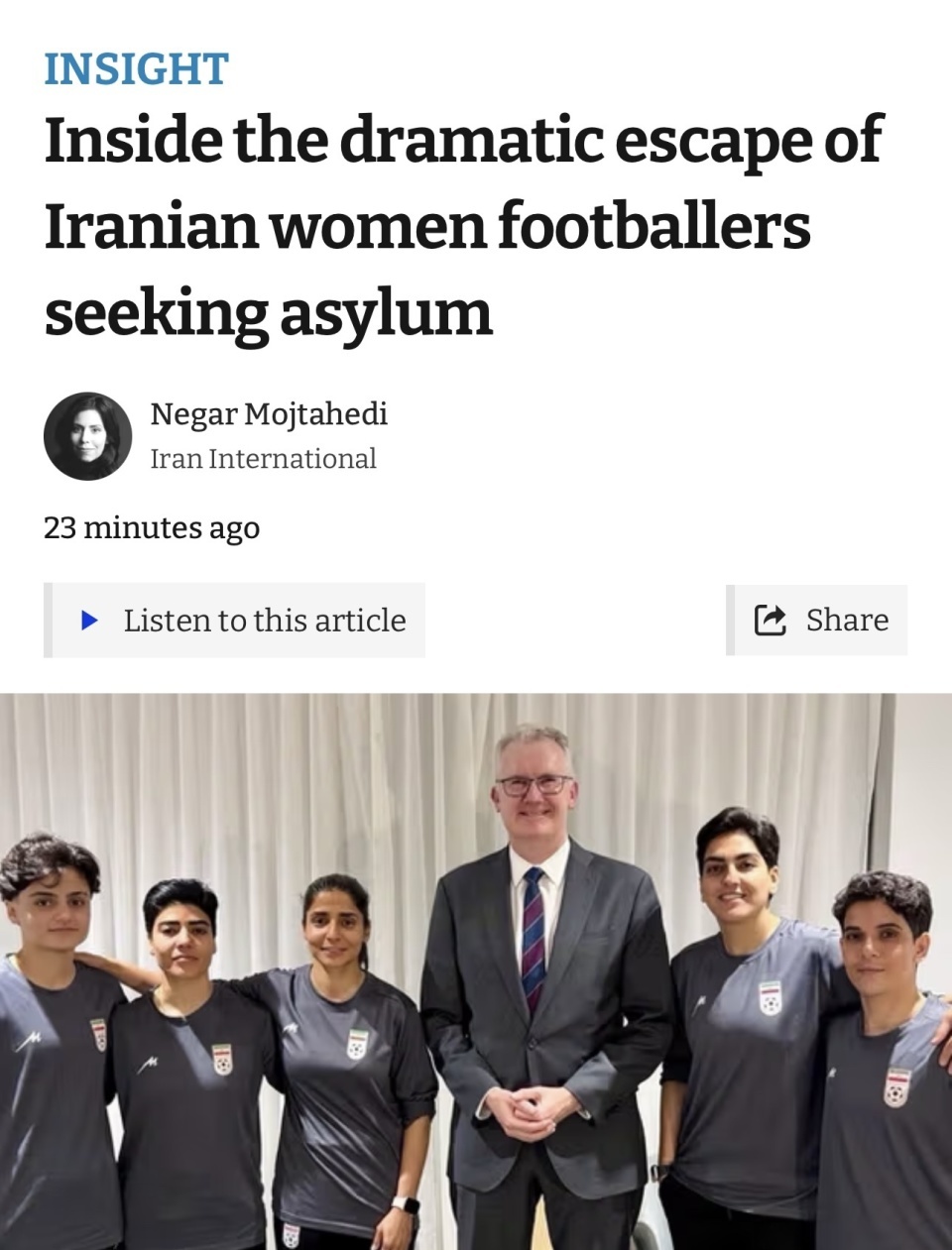 记者Pourbakhsh透露:“我从营地内部收到信息,她们的家人受到了直接威胁。一些球员觉得自己是人质,她们被告知,家人的安全取决于她们在比赛结束后是否返回伊朗。球员们认为自己的手机可能被窃听,所以避免直接沟通。”