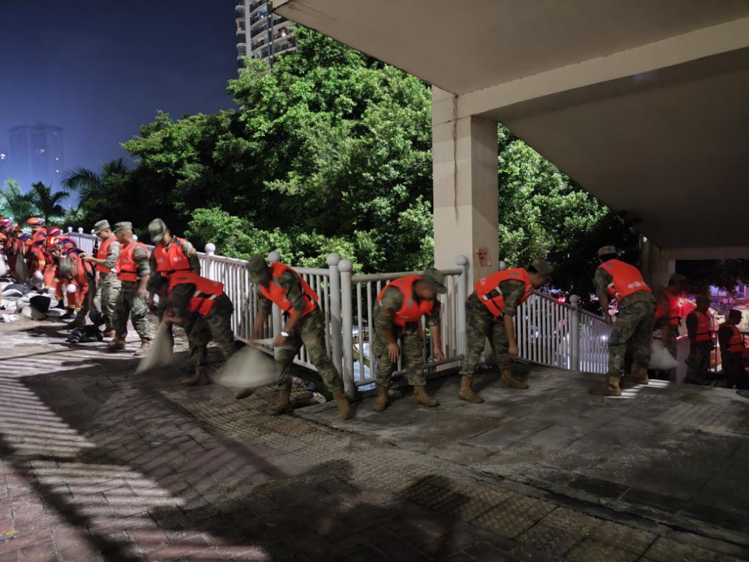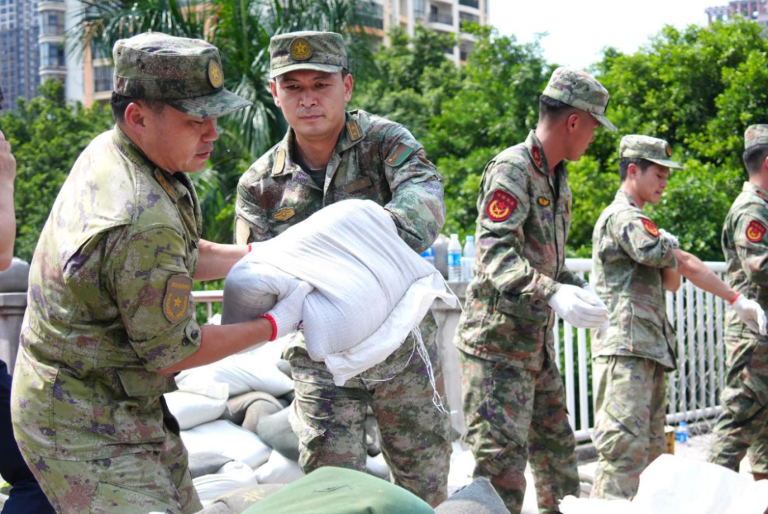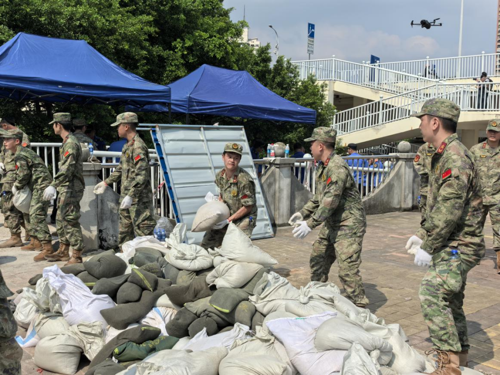南宁市西乡塘区民兵队员接续奋战17个小时,累计装填沙土约200吨,搬运沙袋约5300袋,经多方合力攻坚,邕江堤坝险情得到有效控制,未造成人员伤亡,整体形势平稳可控。